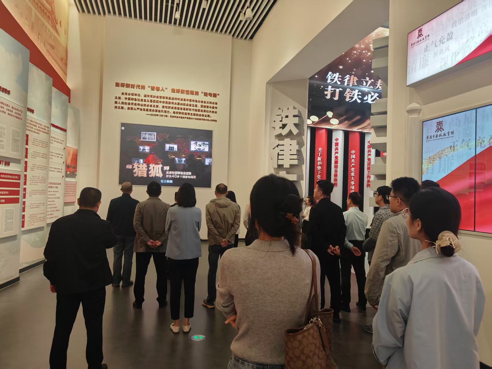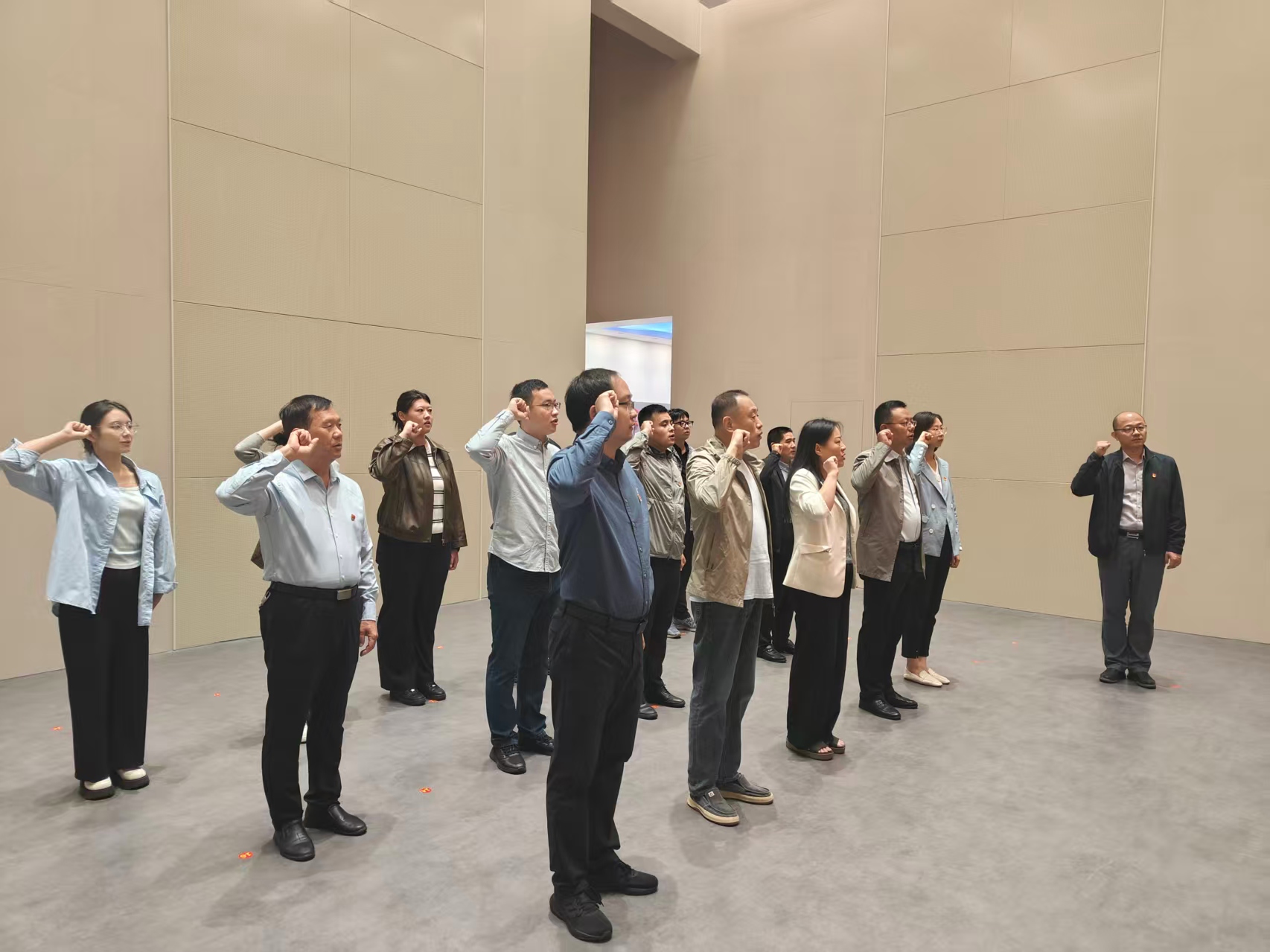 在枣庄市廉政教育馆,党员干部依次参观了“不忘来时路”“利剑斩荆棘”“笃行致高远”展厅,通过观看珍贵历史文献、影像资料、典型案例等进行“沉浸式”现场教学,全景式回顾了党的百年奋斗史,深入了解不同历史时期党在纪律建设方面的积极探索与实践,深刻感悟全面从严治党的坚定决心。一系列真实鲜活的违纪违法案例、发人深省的忏悔录,以强烈的感官冲击为大家敲响了廉洁自律的警钟。在宣誓厅,全体党员面向党旗,重温入党誓词,用铮铮誓言,砥砺初心使命。